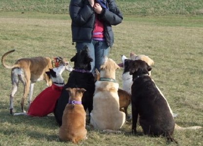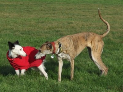 She follows Annie around and she is now permitted by Annie to sniff her nose and bottom (privileged as well as clever). The one thing with Twiggy is that she paces round in circles as an anxiety thing. Not always but it's like an automatic response, I'm 99.999999% sure it's behavioural. I can only imagine that she must have been either left on her own a lot without any stimulation or shut up somewhere small, a bit like a prisoner in an exercise yard. She is going to need an understanding owner to work through whatever lingers on from her terrible start!