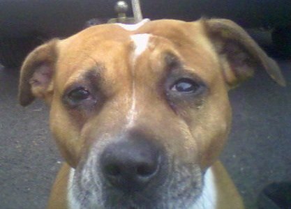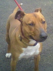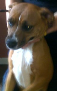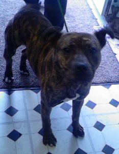 No. 4180: Staffie/Boxer Cross, male, approximately 1 year old.