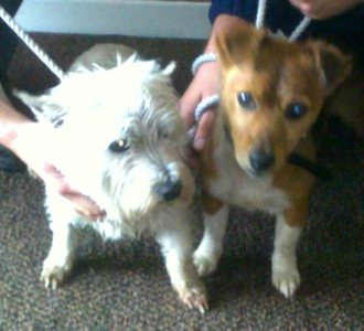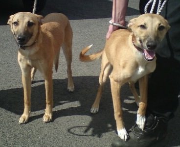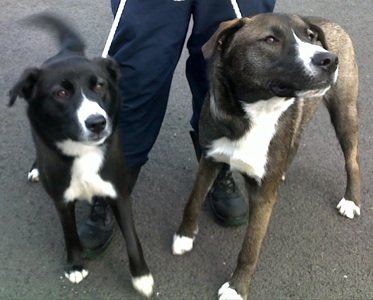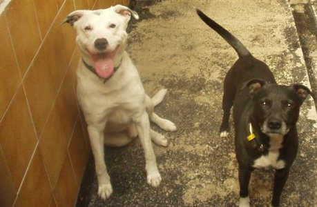 No. 3445: Labrador, male, approximately 4 years old and American Bulldog Cross, female, approximately 4 years old.