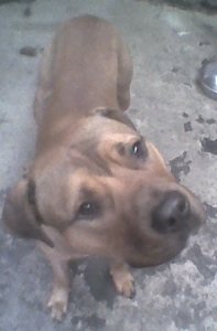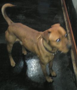 No. 4376: Rhodesian Ridgeback/Staffie Cross, female, approximately 9 months old.