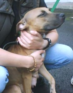 No. 4391: Rhodesian Ridgeback/Staffie Cross, female, approximately 2 years old.