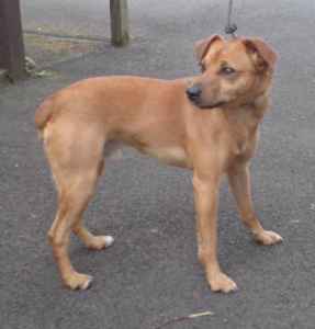 No. 4363: Rhodesian Ridgeback/Staffie Cross, female, approximately 9 months old.